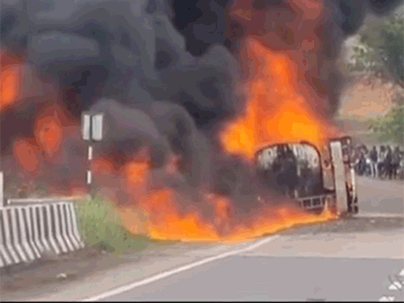 आग इतनी भीषण थी कि दूर से ही धुएं का गुबार देखा जा सकता था। कुछ ही देर में, आग की चपेट में आने से टैंकर में एक जोरदार धमाका हुआ, जिसकी आवाज कई किलोमीटर दूर तक सुनाई दी। धमाके के बाद आग की लपटें और तेज हो गईं।