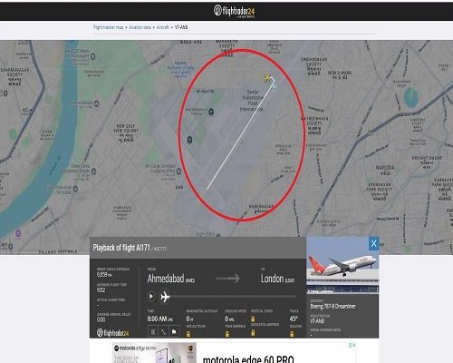 फ्लाइट्स रडार की वेबसाइट पर एयर इंडिया के इस फ्लाइट के उड़ान भरने के बाद क्रैश होने की लास्ट लोकेशन ट्रैक हुई है। इसमें साफ देखा जा सकता है कि एयरपोर्ट से महज कुछ दूरी पर ही फ्लाइट का आखिरी लोकेशन देखा गया है।