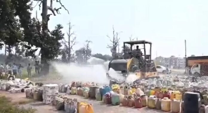 Alcohol Destroyed कोरबा। जिले में पुलिस ने एक बड़ी कार्रवाई करते हुए 38 लाख 24 हजार रुपए की अवैध शराब को नष्ट कर दिया। कुल 21,372 लीटर शराब को नष्टीकरण के दौरान बुलडोजर चलाकर नष्ट किया गया। यह कार्रवाई कलेक्टर की मौजूदगी में की गई, जबकि पूरी प्रक्रिया की वीडियोग्राफी और फोटोग्राफी कराई गई।