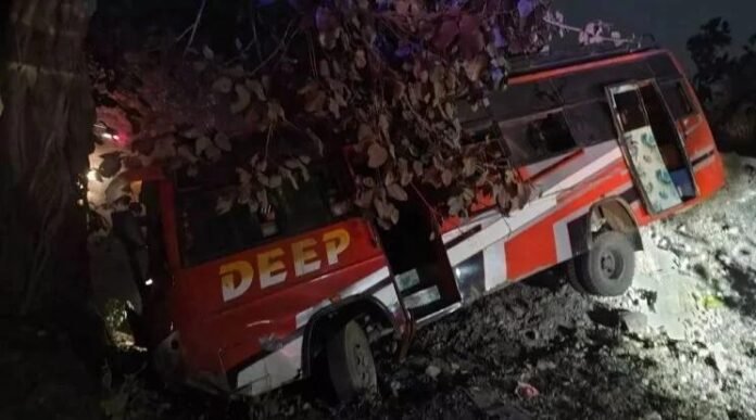 Banjari Ghat Accident , बिलासपुर। पेंड्रा से बिलासपुर की ओर आ रही दीप ट्रैवल्स की यात्री बस मंगलवार शाम बंजारी घाट में एक बड़े हादसे का शिकार हो गई। प्रत्यक्षदर्शियों के अनुसार, बस अचानक अनियंत्रित होकर सड़क किनारे बने प्रोटेक्शन वॉल से जा टकराई। टक्कर इतनी जबरदस्त थी कि बस का अगला हिस्सा बुरी तरह से क्षतिग्रस्त हो गया, जिससे यात्रियों में चीख-पुकार मच गई और मौके पर अफरा-तफरी का माहौल बन गया।