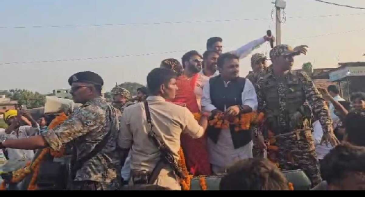 तिलौथू में पवन सिंह का हेलीकॉप्टर उतरते ही इलाके में भारी भीड़ उमड़ पड़ी। इसके बाद उन्होंने स्नेहलता कुशवाहा के साथ खुली थार गाड़ी में सवार होकर रोड शो की शुरुआत की। जैसे ही उनका काफिला सड़कों पर निकला, लोगों ने फूल बरसाकर उनका स्वागत किया।
