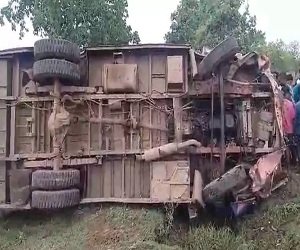 Chhattisgarh के बेमेतरा में बस पलटी, कंडक्टर की मौत