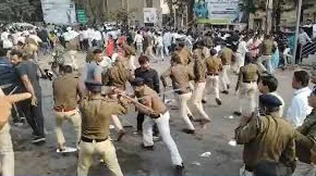 पुलिस ने प्रदर्शनकारियों को नियंत्रित करने के लिए लाठीचार्ज किया।
