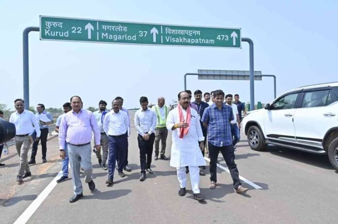 इस दौरान अधिकारियों ने एक्सप्रेसवे प्रोजेक्ट कार्य की संपूर्ण जानकारी दी। डिप्टी सीएम अरुण साव ब्रिज निरीक्षण के बाद ग्राम पंचायत भेलवाडीह के पास पहुंचे, यहां उन्होंने सड़क निर्माण के संबंध पूछताछ की। इस दौरान अधिकारियों से सड़क निर्माण में उपयोग की जा रही सामग्री की गुणवत्ता की जानकारी ली। अधिकारियों ने बताया कि, निर्माण में सभी मानकों का ध्यान रखा गया है। उप मुख्यमंत्री साव ने निरीक्षण के बाद कहा कि भारत सरकार की यह क्रांतिकारी परियोजना है, इसका लाभ प्रदेश की जनता को मिलेगा। इस हाइवे के बन जाने के बाद विशाखापट्टनम जाने में लंबी दूरी तय करना नहीं पड़ेगा। साथ ही यह आर्थिक गलियारा के रूप में महत्वपूर्ण साबित होगा।