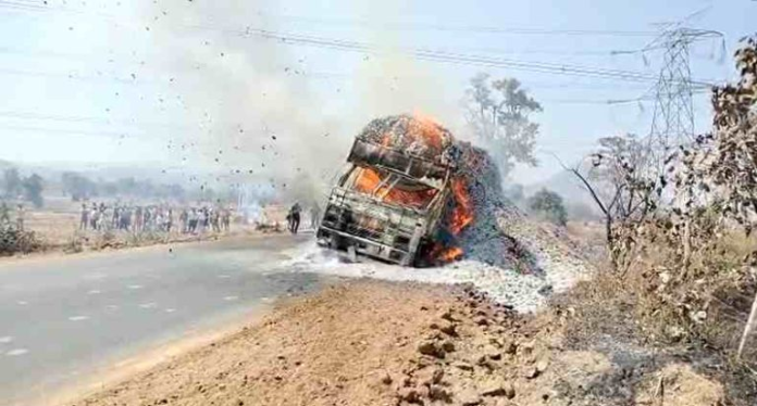 बता दें कि, 11 केवी तार उठाने के दौरान हुए शार्ट सर्किट से तेंदूपत्ता से भरे ट्रक में आग लग गई. हालांकि, घटना के बाद ड्राइवर और आसपास के लोगों ने आग बुझाने का प्रयास किया. लेकिन तेंदूपत्ते में आग की लपट काफी तेजी से फैली और पूरे ट्रक में आग फैल गई. मुख्यमार्ग में ट्रक में आग लगने से सड़क के दोनों ओर लंबा जाम लग गया. घटना की जानकारी लगते ही मौके पर पुलिस और दमकल की टीम पहुंचकर आग बुझाया.