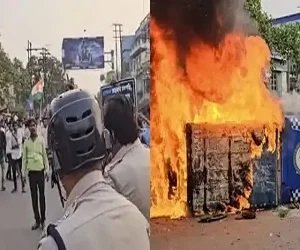 नई दिल्ली: वक्फ कानून के विरोध में पश्चिम बंगाल हिंसा की आग में जल रहा है। मुर्शिदाबाद के बाद सोमवार को साउथ 24 परगना में एक बार फिर जबरदस्त हिंसा हुई। इंडियन सेक्युलर फ्रंट के कार्यकर्ताओं ने भांगरा इलाके में जमकर हिंसा की। पुलिस की गाड़ियां तोड़ दी गई। दुकानों में पत्थबाजी की गई, कई बाइकों में आग लगा दी गई और हाईवे को जाम कर दिया गया। घंटों तक इंडियन सेक्युलर फ्रंट के कार्यकर्ता तोड़फोड़ और हंगामा करते रहे। वहीं पूर्वी बर्धमान में भी इंडियन सेक्युलर फ्रंट के कार्यकर्ताओं ने हंगामा किया। पुलिस ने बैरिकेडिंग की तो उसे भी तोड़ने की कोशिश की जिसके बाद पुलिस ने लाठीचार्ज करके उपद्रवियों को खदेड़ा।