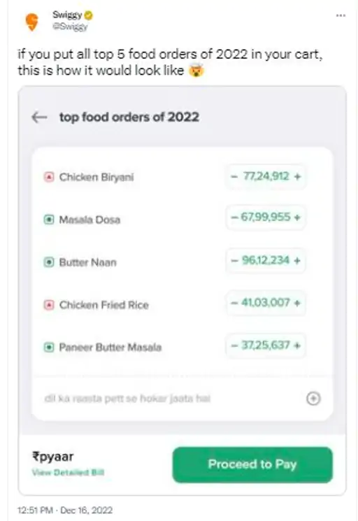 2022 में भारतीयों ने सबसे ज्यादा ऑर्डर की चिकन बिरयानी:स्विगी ने शेयर की लिस्ट, बेंगलुरु में शख्स ने ऑर्डर किया 16 लाख का सामान