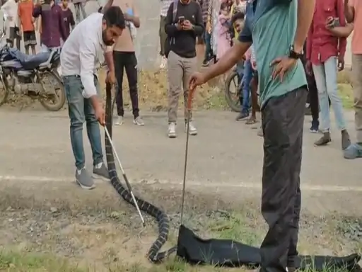 मौके पर भीड़ जमा हो गई और कई लोगों ने सांप की वीडियो बनाई, लेकिन किसी ने उसे छेड़ने की कोशिश नहीं की। वन विभाग और नोवा नेचर वेलफेयर सोसाइटी के जितेंद्र सारथी मौके पर पहुंचकर किंग कोबरा को सुरक्षित पकड़कर जंगल में छोड़ दिया।