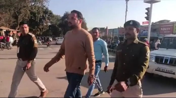 कोरबा। पिछले दिनों शराब के नशे में पत्रकार पर हमला करने वाले आरोपी शैलेश झा का पुलिस ने जुलूस निकाला । पुलिस कार्रवाई की सराहना लोगो ने की है । आपको बता दें कि एमपी नगर में आतंक का पर्याय बन गए शैलेश झा, एसपी सिंह, पिंटू यादव, बंटी सरदार और शाहिद ने पिछले दिनों शहर के पत्रकार के साथ मारपीट की थी । जिसके बाद उनके ऊपर कार्रवाई की गई और आज जुलूस निकाला गया।