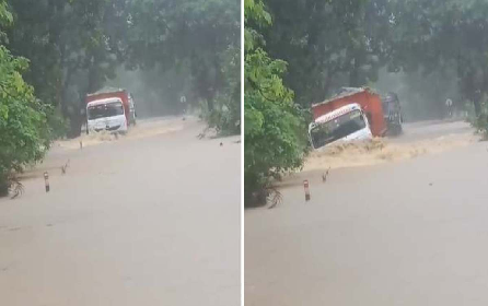 इसी दौरान बिलासपुर की तरफ से आ रहे कोयला लोड ट्रक का ड्राइवर पुल को पार कर रहा था. पानी के तेज बहाव के चलते ड्राइवर समेत ट्रक पुल के नीचे गिर गया. इस घटना का वीडियो इस मार्ग पर चलने वाली बस के सहायक ने अपने मोबाइल से बनाया है.