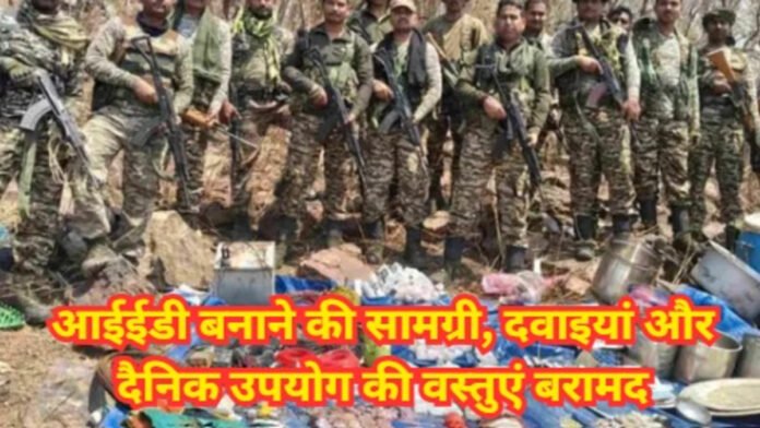दैनिक उपयोग की वस्तुएं: बड़ी मात्रा में दवाइयां, नक्सली साहित्य, कपड़े और रसद सामग्री।