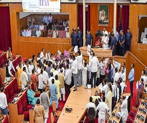 सदन में धक्का-मुक्की, आपस में भिड़े विधायक