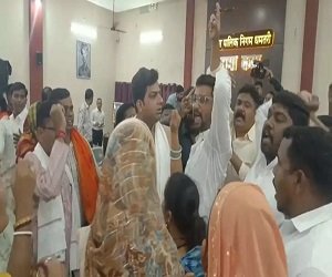 धमतरी : नगर निगम में सामान्य सभा की बैठक के पहले विपक्ष ने जोरदार हंगामा किया। इस दौरान कांग्रेसी पार्षद हाथ में तख्ती लेकर निगम में महापौर के खिलाफ जमकर नारे बाजी की। हंगामा इतना बढ़ा की दो महिला पार्षद आपस में भिड़ गई। जिसके चलते काफी गहमागहमी का माहौल देखने को मिला। विपक्षी आदिवासी परिवार के घर में बुलडोजर चलाने के मामले में हंगामा कर रहे हैं।