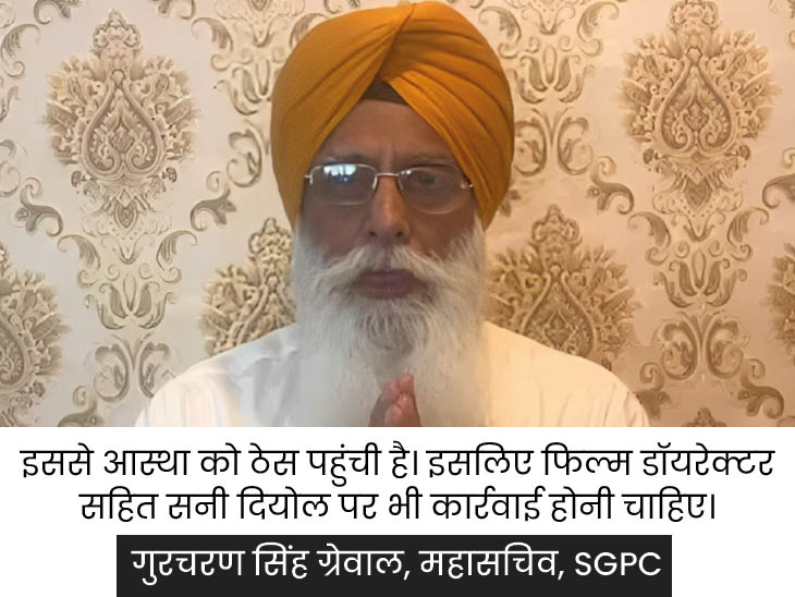 SGPC के महासचिव गुरचरण सिंह ग्रेवाल ने कहा कि एक सिख होते हुए सनी देओल इस तरह के दृश्य को गुरुद्वारे के परिसर में फिल्मा रहे हैं। दोनों एक ऐसी मुद्रा में है, जो गुरुद्वारा परिसर में निंदा योग्य है और उन पर फूल भी बरसाए जा रहे हैं। उन्हें समझना चाहिए कि गुरुद्वारे की मर्यादा है और इस तरह के दृश्य यहां नहीं फिल्माए जा सकते।