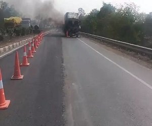 पिथौरा : महासमुंद जिले के पिथौरा थाना क्षेत्र के राष्ट्रीय राजमार्ग 53 पर कसीबहरा के पास चलती ट्रक में आग लग गई. ट्रक से कूदकर चालक और परिचालक ने अपनी जान बचाई. घटना की सूचना मिलते ही टोल प्लाजा की फायर ब्रिगेड टीम आग बुझाने में लगी है.
