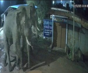 घटना आज सुबह 4 बजकर 44 मिनट की है, जब नगर के घोड़ा मंदिर के पास दो दंतैल हाथी नजर आए. दंतैल के आने से पहले तीन राहगीर रास्ते से जा रहे थे. थोडी दूर चले ही थे कि दंतैल को देखकर तीनों ने अपनी जान बचाई. यह पूरी घटना सीसीटीवी में कैद हो गई है, जिसमें राहगीरों की हालत का अंदाजा आसानी से लगाया जा सकता है.