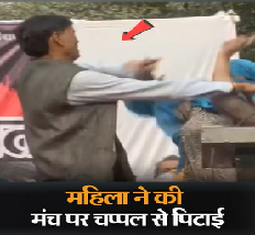 मीडिया रिपोर्ट्स के मुताबिक, महिला की बेटी इस शख्स के बेटे के साथ फरार हो गई थी। दोनों ने शादी भी कर ली। महिला इसी बारे में मंच पर बता रही थी। इसी दौरान वह गुस्से में आ गई और चप्पल निकालकर व्यक्ति को मारना शुरू कर दिया। कार्यक्रम में मौजूद बाकी लोगों ने मंच पर आकर महिला को रोका।